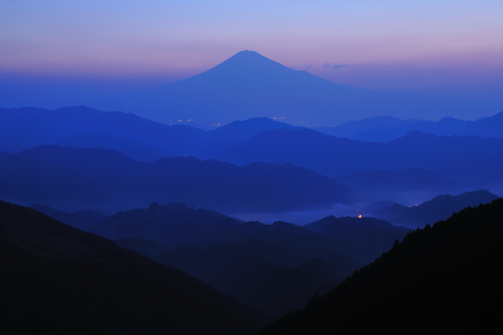 現地についての1枚目。今日の日の出が4時40分過ぎ、随分と早くなったものだ。雲海と街灯りの幻想的な写真を撮るには2時過ぎくらいから準備してないとダメかな。その時間に来ていても雲海があるとは限らないし、この場所自体が雲海の中なんてことがあるから難しいんだけどね。